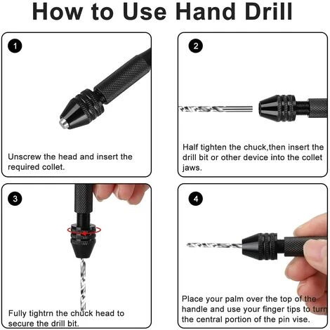 Matériau robuste: la perceuse à main à étau à goupille est principalement en alliage durable et difficile à rouiller, les mini-forets hélicoïdaux sont en acier rapide, durables et difficiles à mélanger lors de l’utilisation, vous donneront une utilisation satisfaisante vivre