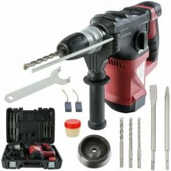 - Livraison : 1x perforateur, 3x SDS mandrins, 2x burins, 1x graisse, 1x clé plate, 1x écarteurs, 2x balais de charbon, 1x mallette de rangement, 1x mode d’emploi