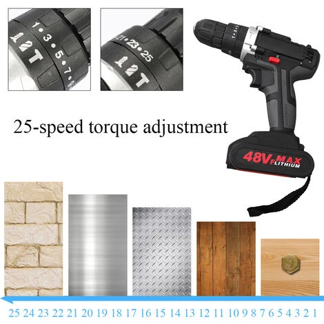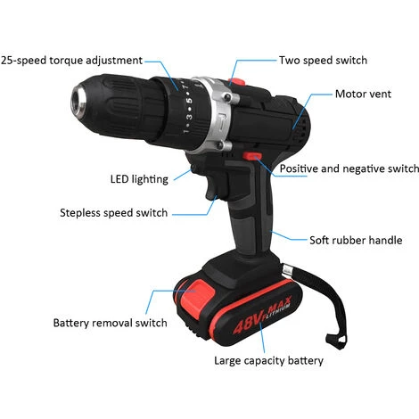 Cette perceuse électrique est équipée d’une batterie haute puissance, non limitée par des fils; elle est facile à installer et à démonter, sûre à utiliser, facile à transporter, adaptée à une utilisation domestique ou extérieure.