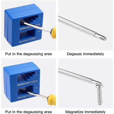 Description :(Cette fonction de démagnétisation est médiocre et l’effet de magnétisation et de magnétisation est très bon)1. Quelle que soit la qualité de votre tournevis, il sera démagnétisé après une période d’utilisation.2. Le démagnétiseur magnétique peut être utilisé pour tous les outils qui doivent être magnétisés, tels que les tournevis, les tournevis, les tournevis, etc. Il est simple et pratique à utiliser.3. Lorsqu’il est difficile de saisir la vis, il suffit d’insérer le tournevis dans l’extrémité aimantée avec +, afin que la vis puisse être saisie facilement.4. Lors de la réparation d’appareils électriques, de composants électroniques et d’accessoires, insérez un tournevis dans l’extrémité avec un caractère – et le magnétisme peut être retiré immédiatement.