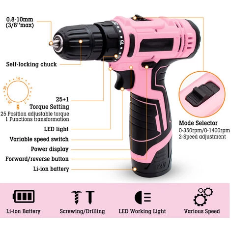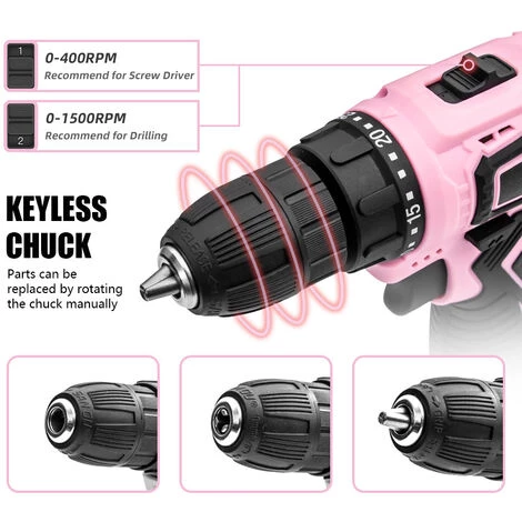 Chaque kit de perceuse est livré avec une batterie, un chargeur, un kit d’outils en nylon, des embouts de tournevis et des forets pour la plupart des applications de bricolage.