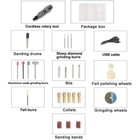 ACCESSOIRES D’OUTILS ROTATIFS DIVERSITY – Avec le kit d’accessoires 24pcs qui peut être utilisé pour divers types de projets domestiques et d’artisanat tels que le ponçage, le meulage, le taillage, le polissage, le perçage et plus encore.