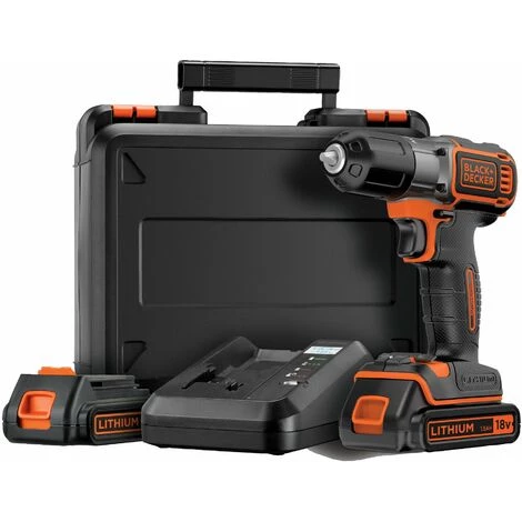 La perceuse-visseuse Autosense BLACK+DECKER ASD18KB-QW est livrée en coffret avec deux batteries 18 V de 1,5 Ah.