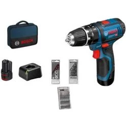 Avec fonction percussion, la perceuse visseuse Bosch GSB 12V-15 offre une prise en main optimale notamment lors des travaux de vissage et perçage en hauteur et dans les endroits difficiles d’accès.