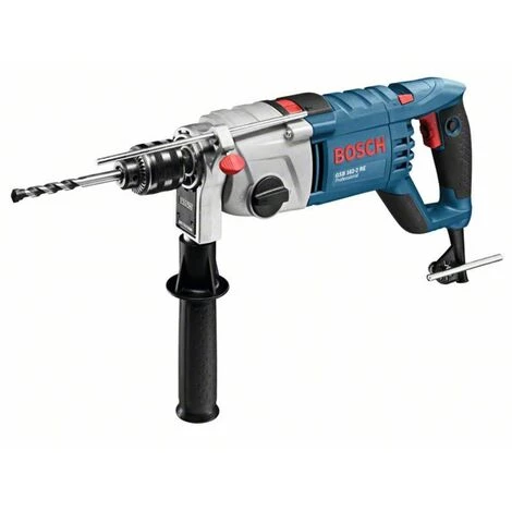 Perceuse percussion GSB 162-2 RE. Robuste dans toutes les applications – m?me avec le perçage sec au diamant. Couple tr?s élevé pour les utilisations intenses. Moteur Bosch hautes performances (1.500 W) avec une capacité de surcharge élevée pour les applications les plus difficiles. Vitesse optimisée pour une progression rapide du travail lors du perçage sans impact avec des trépans diamantés jusqu’162 mm. Embrayage de surcharge avec un couple d’environ 50 Nm. La protection contre le redémarrage emp?che la machine de redémarrer automatiquement apr?s une panne de courant. Poignée supplémentaire robuste avec fixation innovante et prise souple pour une prise en main s?re de la machine. Mandrin de perçage robuste de type clé de 16 mm avec verrouillage automatique. Présélection de la vitesse avec molette de réglage pour un travail précis. Plaque de brosse rotative pour une force égale en rotation droite et gauche. Passe-fil sphérique pour plus de liberté de mouvement et pour éviter les ruptures de câble. Poignée supplémentaire (2 608 025 205). Coffret de d’artisan. Butée de profondeur (ET-Nr. 2 600 460 045). Mandrin porte-clés 16 mm (1 608 571 057)