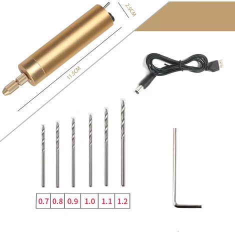 Couleur, style et taille : or, câble de données USB + 1 et clé hexagonale + 0,7/0,8/0,9/1,0/1,1, un jeu de forets de 1,2 mm, 11,5 x 2,5 cm.