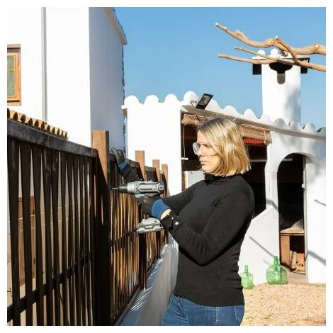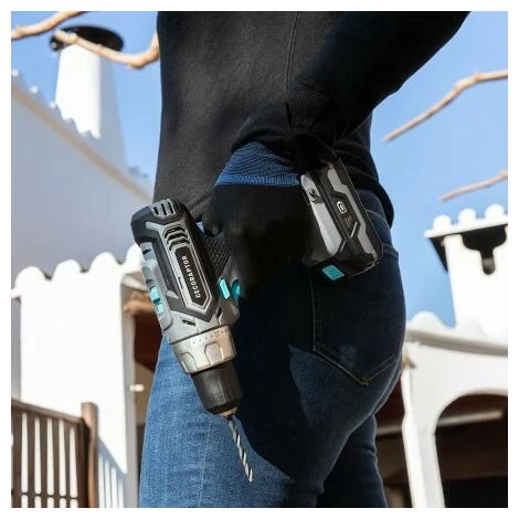 Trapano a batteria da 20V e 2000 mAh con una velocità a vuoto di 1550 giri/min, una coppia massima di 46 Nm, 25+1 posizioni di coppia e 2 velocità di lavoro. Portapunte di fissaggio automatico, luce di lavoro integrata e autonomia fino a 60 min.