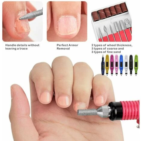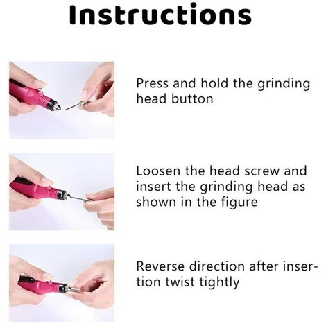 Mode d’emploi: 1. Appuyez et maintenez le bouton du stylo d’affûtage; 2. Desserrez la vis de tête femelle; 3. Insérez la tête d’affûtage requise; 4. Serrez-le dans une direction après l’avoir inséré, et la vitesse peut être ajustée.