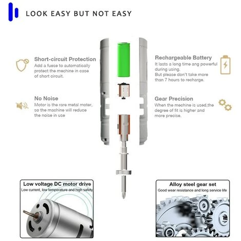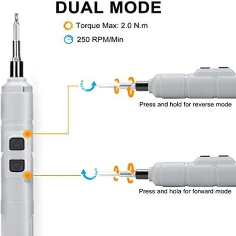 1. Supporte la Rotation Positive et négative: appuyez simplement sur le bouton pour dévisser ou visser les vis avec facilité.