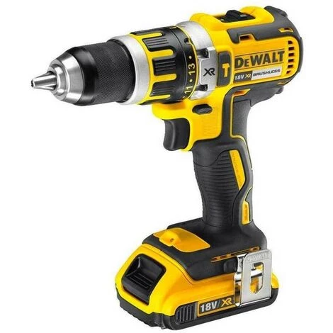 - Perceuse à percussion à batterie lithium XR 18V avec moteur brushless brushless qui augmente l’autonomie et délivre plus de puissance; et mandrin de 13 mm