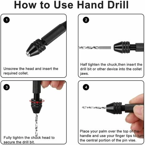 Matériau robuste: la perceuse à main à étau à goupille est principalement en alliage durable et difficile à rouiller, les mini-forets hélicoïdaux sont en acier rapide, durables et difficiles à mélanger lors de l’utilisation, vous donneront une utilisationsatisfaisante vivre