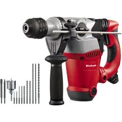 Le marteau perforateur RT-RH 32 est le leader des marteaux perforateurs Einhell. Les bricoleurs „Expert“ ne jurent que par cet outil puissant qui a fait ses preuves dans les travaux de construction, de rénovation et de démolition. Ce monstre d’énergie dispose des 3 fonctions pour une utilisation universelle: perçage à percussion, perçage et burinage avec fixation du burin. Son mandrin SDS-Plus permet un changement rapide et sans outil des forets et des burins et, assure une force de frappe massive de 3,5 joule avec son puissant moteur de 1250 Watt, pour maîtriser tous les travaux intensifs.