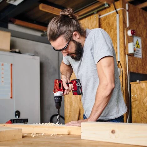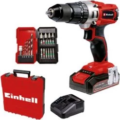 Très polyvalente, la visseuse-perceuse à percussion sans fil TE-CD 18/2 Li-i +22 (1×2,5 Ah) Einhell permet de réaliser 3 opérations de bricolage très importantes. Elle allie en effet dans cet outil sans fil les fonctions de vissage, de perçage et de perçage à percussion.