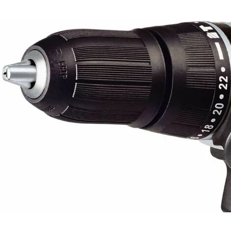 Système de batterie Power X-Change – utilisable avec d’autres outils Batterie Lithium-Ion : sans auto-décharge, petit, léger, maniable 3 fonctions : vissage, perçage, perçage à percussion dans la maçonnerie 2 vitesses pour des vissages puissants et des perçages rapides Puissant moteur et engrenage métallique pour un couple élevé Mandrin auto-serrant monobloc 13 mm avec arrêt rapide » Quick-Stop » Blocage automatique de l’arbre pour un changement facile des accessoires Prise en main sûre grâce à la poignée supplémentaire Variateur électronique à dosage fin pour des travaux délicats Protection contre le survissage par débrayage du couple Chargeur rapide 30 minutes (Système de chargeur Power X-Change) Niveau de charge toujours disponible par pression sur le témoin Témoin du sens de rotation Livrée en coffret Données techniques : Batterie: 18 V | 1500 mAh | Lithium-Ion Temps de charge: 1/2h Nombre de vitesses: 2 Régime à vide (vitesse 1): 0-320 tr/min. Régime à vide (vitesse 2): 0-1350 tr/min. Couple max.: 48 Nm Nombre de positions du couple: 25 positions Mandrin: 13 mm | monobloc Diamètre de perçage dans le béton: 15 mm
