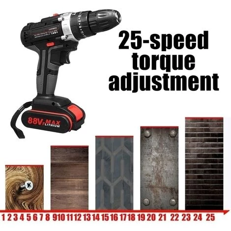 - Réglages en 3 étapes : perçage à percussion, perçage plat et vis de tournage