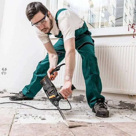 Multifonction – Le marteau a 5 fonctions : rotation uniquement réglage de la position du burin; perceuse à percussion pour percer le béton et le granit; marteau seulement pour percer des matériaux tels que le bois, l’acier et percer pour percer un plus grand trou dans le bois et ciseau. La machine peut également être utilisée comme marteau de démolition en combinaison avec les burins correspondants fournis