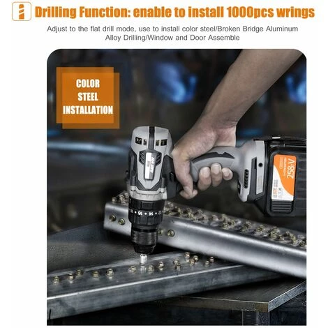 | qualité industrielle pilote de perceuse sans fil avec moteur sans balai peut livrer au pouvoir d’impact 200Nm (2655 inf), ce qui est 10 fois plus le pilote de forage majoritaire sur le marché. foret 2-vitesse avec 23 la position d’embrayage pour foret plat / Kai essorer / Impact, à vitesse variable commandé par une force différente de la presse, complet pour une installation en acier de couleur, le perçage métal, ouverture 100mm grand trou pour le bois, etc. Traits: |