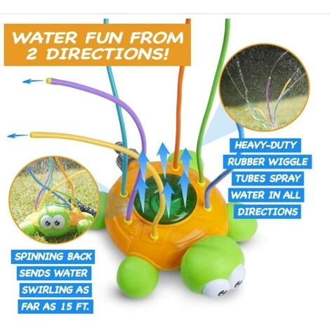 Cool et amusant. Notre arroseur d’extérieur se présente sous la forme d’une jolie tortue avec une variété de soufflets colorés pour faire tourbillonner l’eau n’importe où.