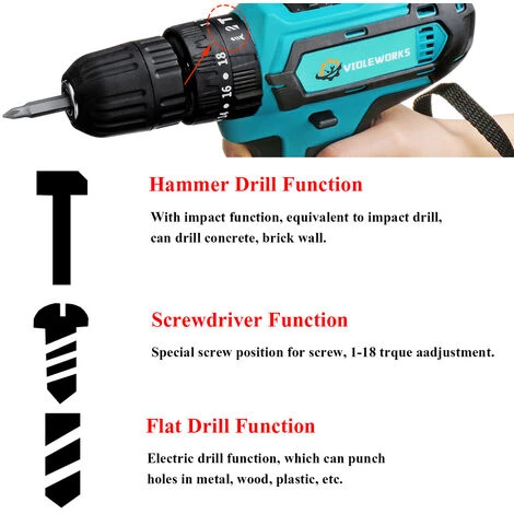 – 18 + 3 réglages d’étape, offre 18 réglages de couple et 3 modes de perçage pour un travail de haute précision