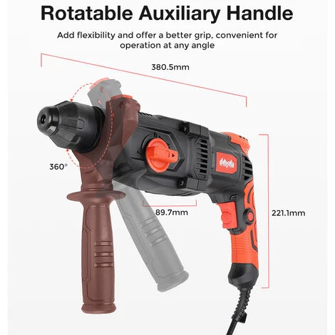 4 fonctions en 1 bouton. Il suffit de changer le cadran pour convertir entre perçage / perceuse à percussion / rotation du burin / burinage.