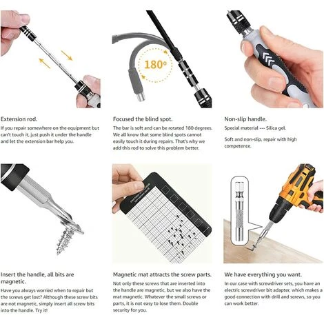 - Tous les outils sont rangés dans une boîte de rangement pour être facilement transportés. Les outils ne se détachent pas facilement. Ce jeu de tournevis est un cadeau idéal pour les amis et la famille.