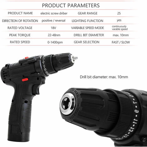 Cette perceuse lithium-ion rechargeable sans fil robuste est parfaite pour le professionnel ou le bricoleur qui veut de la qualité sans le coût, la perceuse a une poignée confortable et douce pour une utilisation facile et dispose de deux vitesses avec 25 réglages de couple pour réduire le risque de dommages aux têtes de vis. Il propose des paramètres d’action avant et arrière et de vitesse variable.