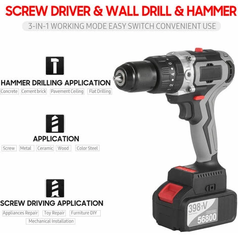 Perceuse à percussion ergonomique de qualité industrielle – La perceuse compacte avec une poignée en caoutchouc souple offre une prise confortable pour être actionnée d’une seule main et réduit parfaitement la fatigue pour une utilisation de longue durée et un accès facile aux zones étroites. Venez avec une poignée auxiliaire pour vous aider à effectuer des travaux lourds, tels que le forage de trous de glace de 1,25 mètre d’épaisseur. Tournevis et perceuse murale et marteau Le mode de travail 3-en-1 vous permet de traiter tous les travaux, des travaux légers aux travaux lourds.