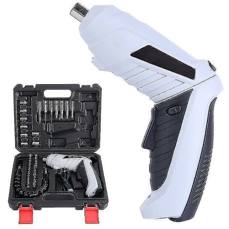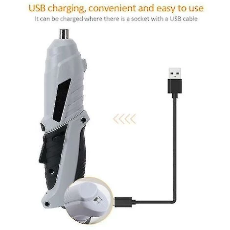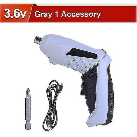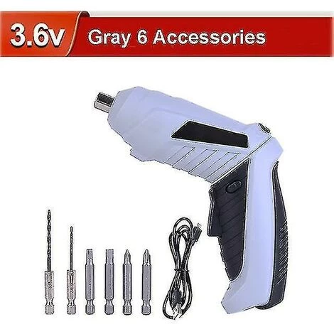 Tournevis électrique sans fil 3,6 V tournevis électrique rechargeable batterie outil électrique poignée torsadée led outil électrique de bricolage domestique (gris 6 accessoires) Le produit est expédié en fonction de la couleur ou de la taille de l’image principale de la page du produit. Couleur : gris 6 accessoires Spécification : caractéristique : Mini tournevis électriqueFonction : Tournevis électrique multifonctionType : Tournevis électrique portableTournevis : Tournevis sans filBatterie : 18650/1300mahBatterie : Batterie au lithiumCouple maximum : 3.5N/MTemps de charge : 3-5 heuresFonction de rotation : 90°Vitesse : 250r/minVoltage : 3.6VTour : deux- wayColor: Gris, RougeFonctionnalité1. Chargement USB, sans fil2. Il peut tourner en avant et en arrière et peut serrer ou desserrer les vis3. Éclairage LED : la lumière sera allumée lors du travail4. Mini et compact, facile à utiliser5. Deux modes de perceuse électrique : type pistolet et type à poignée droite6. Batterie au lithium de grande capacité, plus puissante, plus longue durée d’utilisation et plus durable. Remarque : 1. Veuillez permettre une erreur de 1 à 3 mm en raison de la mesure manuelle. Veuillez vous assurer que cela ne vous dérange pas avant d’enchérir.2. En raison des effets d’éclairage, des paramètres de contraste de luminosité du moniteur, etc., il peut y avoir de légères différences dans la tonalité de couleur des images et de l’élément réel3. À propos de ce produit, compte tenu du problème de lot de production à différentes étapes de l’usine, il peut être différent de la marque sur l’étiquette, mais soyez assuré que la qualité du produit est la même. C’est ce que nous pouvons garantir et promettre. Si cela vous dérange, veuillez l’acheter avec soin. Merci