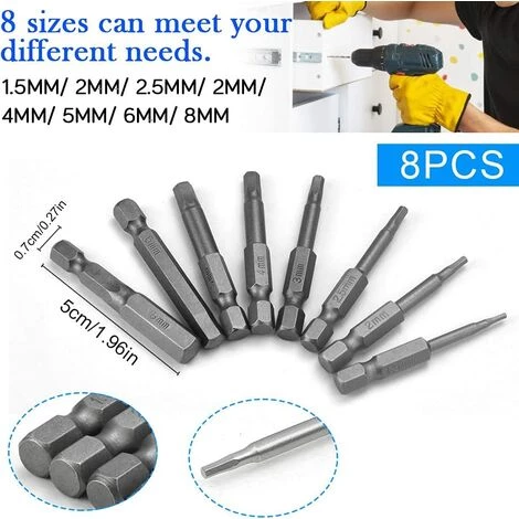 8 pièces S2 tournevis en acier embouts Allen embouts de tournevis magnétiques embouts hexagonaux (1.5/2/2.5/3 // 4/5/6/8, 5CM)
