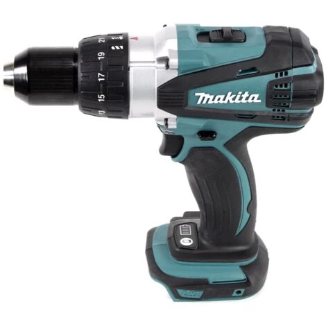 La puissante perceuse sans fil Makita DDF 458 impressionne par son engrenage planétaire entièrement métallique à 2 vitesses, une vitesse réglable avec sensibilité et le réglage du couple 21 fois avec réglage de la perceuse. La rotation horaire/antihoraire et le mandrin sans clé assurent un travail confortable. La LED lumineuse avec fonction de rémanence éclaire de manière optimale le lieu de travail et l’affichage de la capacité fournit toujours des informations sur le niveau de charge de vos batteries Makita. Une protection complexe contre la poussière et les éclaboussures d’eau du Makita DDF 458 et un frein moteur intégré garantissent la sécurité nécessaire pour les utilisateurs et l’appareil.