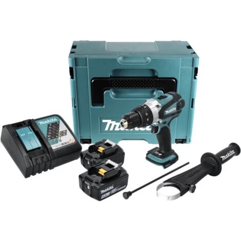 L’outil est destiné au perçage à percussion dans la brique, le béton et la pierre. L’outil convient également pour visser des vis et percer sans marteler dans le bois, le métal, la céramique et le plastique. L’ensemble Makita DHP 458 RTJ convainc par son excellent rapport qualité / prix ainsi que par une machine compacte et puissante et la batterie longue durée Makita 5,0 Ah. La perceuse à percussion compacte et pratique est équipée d’un mécanisme de percussion débrayable et d’un puissant engrenage planétaire entièrement métallique à 2 vitesses, qui est à la base des performances élevées de la machine. La visseuse sans fil est équipée d’une rotation droite/gauche, d’une régulation de couple par niveaux et d’un mécanisme de percussion qui peut être désactivé. De plus, deux lumières LED brillantes avec fonction de rémanence sont installées, qui éclairent toujours de manière optimale la zone de travail.Grâce au chargeur rapide, la batterie compacte Makita BL 1850 est rechargée et prête à être réutilisée en seulement 45 minutes. Avec le programme de combinaison de batteries de Makita, vous pouvez systématiquement élargir votre gamme avec des batteries et des machines supplémentaires de la série Li-Ion 18V et combiner les produits comme vous le souhaitez.