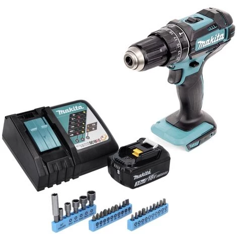 La perceuse-visseuse à percussion Makita DHP 482 avec engrenage planétaire entièrement en métal à 2 vitesses avec engrenages en métal et puissant moteur à courant continu à 4 pôles a un réglage de couple de 21 fois plus un réglage de forage supplémentaire et une fonction d’impact. Le XPT (eXtreme Protection Technology) protège la machine de la poussière et des projections d’eau, ce qui augmente sensiblement la durée de vie du tournevis. De plus, la perceuse à percussion convainc par sa lumière LED intégrée pour éclairer la zone de travail, le frein moteur électronique et le mandrin sans clé de 13 mm.