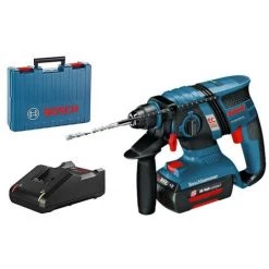 Marteau Perforateur BOSCH 36V EC Compact avec une batterie lithium 1.3 Ah innovante. Moteur Bosch Brushless sans charbon compact, léger et sans entretien. Outil léger idéal pour les travaux en hauteur. Son Mécanisme de frappe pneumatique est optimisé pour les diamètres de 4 à 12 mm dans le béton (18 mm maxi). La batterie peut être chargée à tout moment sans endommager les cellules car il n’y a pas d’effet mémoire. Système ECP: protection de la batterie contre la surchauffe et la décharge totale. Système de charge rapide Turbo Charge Bosch pour une charge à 75 % dès la moitié du temps de charge. Travail sans fatigue grâce au système Vibration Control Bosch.