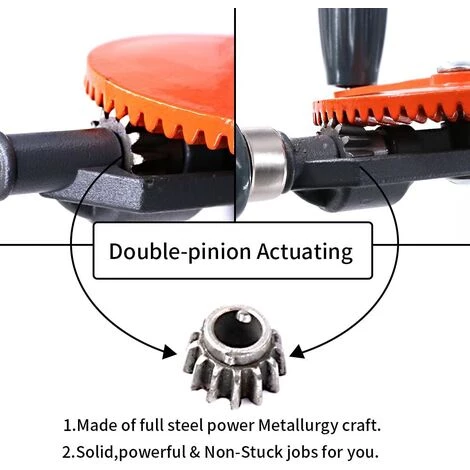 Avec un mandrin à clé — L’outil que vous pouvez trouver avec des engrenages à double pignon (moins de risque de liaison ou de décapage) et un mandrin qui utilise une clé qui vous permet de vraiment serrer l’embout afin qu’il ne glisse pas. Convient pour la menuiserie, les amateurs de bricolage, les amateurs de modélisme, la production créative, les activités extrurriculaires des étudiants, la pratique d’enseignement et d’autres outils idéaux.