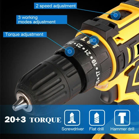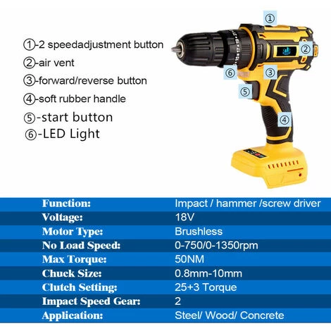 – Fonction : perceuse à percussion, perceuse à percussion, tournevis 3 en 1