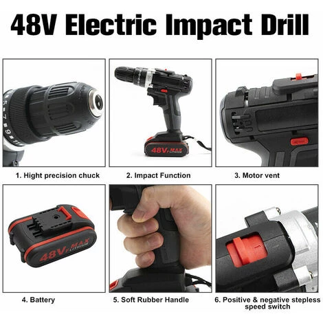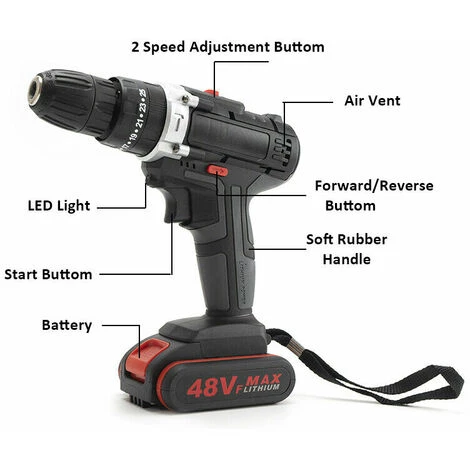 -Perceuse sans fil à usage intensif, fournit un couple de 25N.m et une vitesse de 1450RPM.
