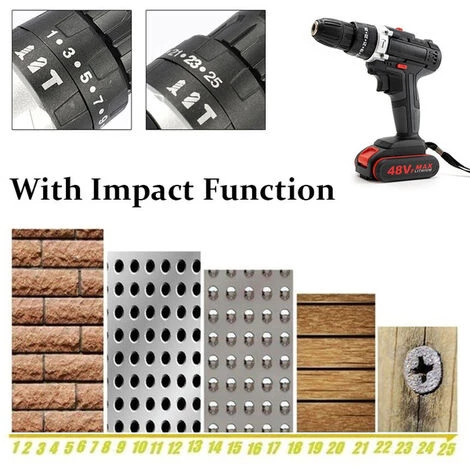 -Contrôle de 25+3 embrayages, 25 réglages de couple et un mode de perçage pour diverses applications.