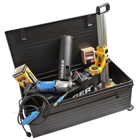 - Carotteuse : Pack carrotage électrique 2000 W raccord 1/2″ ( Bâti + Moteur + Coffret outillage) – 356E – Diager