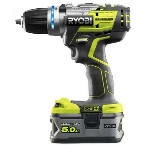 1 x Pack RYOBI perceuse-visseuse à percussion Brushless – 2 batteries 5.0Ah – 1 chargeur 2.0Ah R18PDBL-252S – 21 accessoires de vissage RAK21MSD
