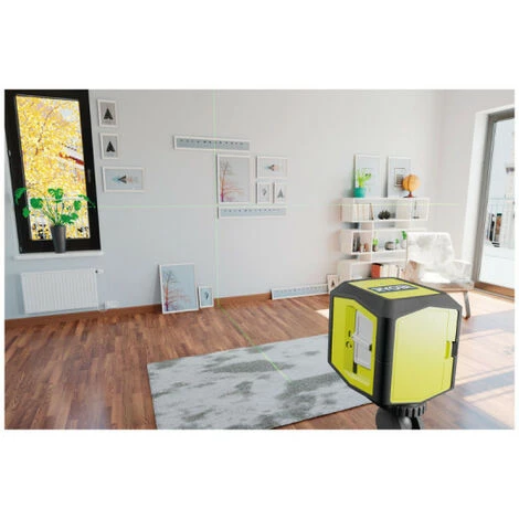 - Projette une ligne verticale et une ligne horizontale simultanément sur une portée de 15 mètres.
