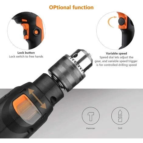 2 Modes en 1, fonction polyvalente – Un interrupteur pour régler la fonction du marteau et perceuse pour les projets à domicile et bricolage