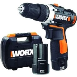 Conception compacte et l�g�re pour un travail sans fatigue. Avec deux vitesses : la premi�re pour un couple plus �lev� – la seconde pour une vitesse plus �lev�e. Mandrin sans cl� 10 mm NoKey�. Lampe de travail � DEL et indicateur de niveau de batterie. Batterie 12v interchangeable avec les autres machines WORX. Puissance : 12v, Batterie:2×2,0 Ah Li-ion, Vitesse � vide : 0-360 /0-1.350 r.p.m, Couple max : 24 Nm, Positions de couple : 16 positions, Capacit� de per�age : 20mm bois, 10mm acier, Temps de charge : 80 min. 2 Batteries Lithium 12v et 2 Ah, 2 vitesses, batteries amovibles et interchangeables avec les autres machines Worx 12v.