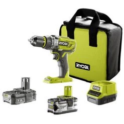 Une perceuse-visseuse 2 vitesses RYOBI 18V ONEPLUS – 2 Batteries LithiumPlus 4,0 Ah et 1,5Ah – 1 chargeur rapide – R18DD3 – 2415BS