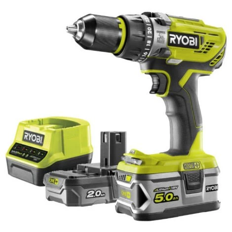 Perceuse-visseuse à percussion RYOBI 18V OnePlus – 2 batteries LithiumPlus 2.0Ah et 5.0Ah – 1 chargeur rapide R18PD31-252S, idéale pour le perçage de gros diamètres, perçage du béton, des briques et pour les vissages extrêmes. Elle est équipée d’un tas de fonctionnalités qui vont vous rendre son utilisation simple : le mandrin autosserant, le by-pass perçage/vissage avec préservation du couple choisi, un variateur de vitesse bi-matière, une poignée profilée ErgoTech et même un éclairage LED intégré.