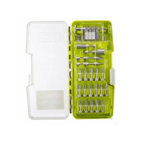 Perceuse-visseuse à percussion RYOBI 18V ONEPLUS Brushless – R18PDBL-252S Tension : 18 volts Couple max : 60 Nm Vitesse à vide : V1 : 440 tr/min V2 : 1700 tr/min Capacité de perçage : Bois : 50 mm Métal : 13 mm Béton : 13 mm Fréquence de frappe : 0 – 27 200 cps/min Nombre de batteries : 2 Ampérage : 5,0 Ah et 2,0 Ah Poids (sans batterie / avec batterie) : 1,3 / 1,7 kg Référence : 5133003614 Aspirateur à main 18V ONEPLUS – R18HV-0 Tension : 18 volts Débit d’air : 0,85 m³/min et 14,2 L/sec Dépression : 4,24 kPa / 0,0424 bar Capacité du collecteur : 540 ml Poids (sans batterie / avec batterie) : 1 / 1,4 kg Référence : 5133003834 Boîte à outils 33 L – 49 cm – RTB19INCH Dimensions : 49 x 29 x 24 cm Capacité : 33 L Référence : 5132004362 Coffret cristal 55 accessoires de vissage mixtes -50 embouts 25 mm : PH1 X 2, PH2 X 2, PH3 X 2 PZ1 X 6, PZ2 X 9, PZ3 X 2 TX6, TX7, TX8, TX9, TX10, TX15, TX20, TX25, TX27, TX30 HEX1, HEX1.5, HEX2, HEX2.5, HEX3, HEX4, HEX5, HEX6 SL4, SL6, SL10 SQ1, SQ2, SQ3 -2 embouts 50mm : PZ2 TX25 -Douilles : 6 & 8 mm Un porte-embout à fixation rapide ¼’’