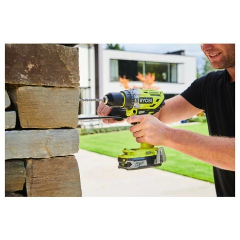 Perceuse-visseuse à percussion RYOBI 18V OnePlus Brushless – Batteries et chargeur rapide – R18PD7-252S, idéale pour une utilisation sur matériaux durs. Sa technologie de poignée bi-matière GripZone vous offrira une prise en main ferme et confortable ainsi qu’une meilleure maîtrise de la machine très pratique sur tous types de matériaux.