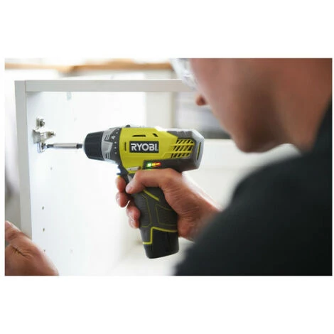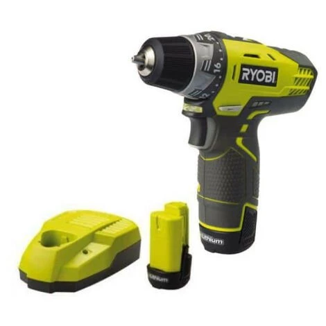 Une perceuse visseuse compacte RYOBI 12V 2 vitesses – 1 batterie Lithium 1,3 Ah et chargeur 1h R12DD-L13S