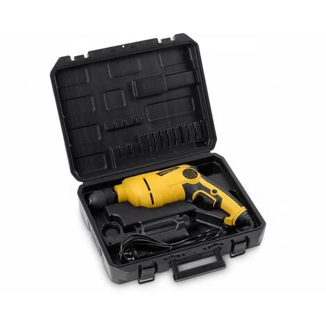 Cette perceuse à percussion Powerplus X munie d’un mandrin à libération rapide vient à bout de tous les travaux de bricolage ! L’outil de forage à percussion dispose d’un réglage en continu du contrôle de vitesse afin de pouvoir en régler aisément la vitesse optimale. Cet outil est fourni avec une butée de profondeur et nécessite peu d’entretien : nettoyez régulièrement le carter de l’outil à l’aide d’un chiffon doux et frottez les grilles d’aération de préférence après chaque utilisation. Mandrin sans clé/fonction de blocage 13 mm