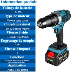 ONEVAN Perceuse à Percussion 3 In1 Perceuse-visseuse Sans Fil Visseuse à Couple Sans Balais
