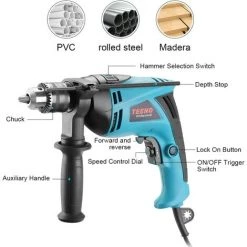 Perceuse Visseuse à Percussion Sans Fil TEENO,2×2.0 Ah Batteries, 13mm Mandrin Auto-serrant – Rouge